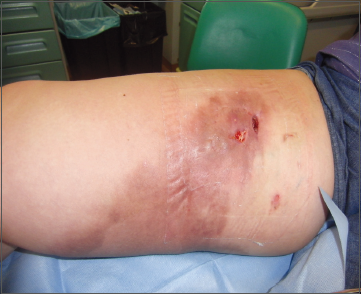 Patients have been treated at a single plastic surgery unit in the last 5 years and they all signed informed consent for the use of clinical data and photographs for scientific purposes. Patients with mild lesions without necrosis, patients with a history of previous skin ulcers were excluded from the case series.