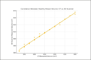3D Scanning offers a simple and less cumbersome alternative to anthropometry, MRI and CT scan for volume assessment. Our study demonstrated a strong correlation between CT-measured and 3D scanner-measured breast volumes (r = 0.964, p < 0.0001). This supports the clinical interchangeability of 3D surface scanning with CT for pre-operative volumetric estimation. The Intraclass Correlation Coefficient (ICC) between CT-based and 3D scanner-based measurements of the healthy breast volume was found to be 0.91, indicating excellent agreement between the two methods. ICC provides a more robust measure of both correlation and absolute agreement, making it particularly relevant when validating two different measurement techniques. ICC values above 0.75 indicate good agreement; above 0.9 is considered excellent and reflects high consistency and interchangeability of CT and 3D surface scanning in breast volume estimation. This further reinforces the reliability of 3D scanning as a non-radiologic alternative to CT, especially in post-operative settings where repeat imaging may be needed.