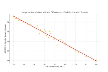 Figure 9. Correlation between volume difference vs satisfaction with the breast domain of Breast Q questionnaire.